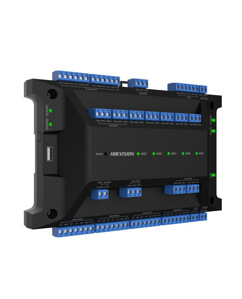 - Supports 2 door control. It can extend up to 62 DS-K2M002X access modules, and up to 126 doors can be controlled