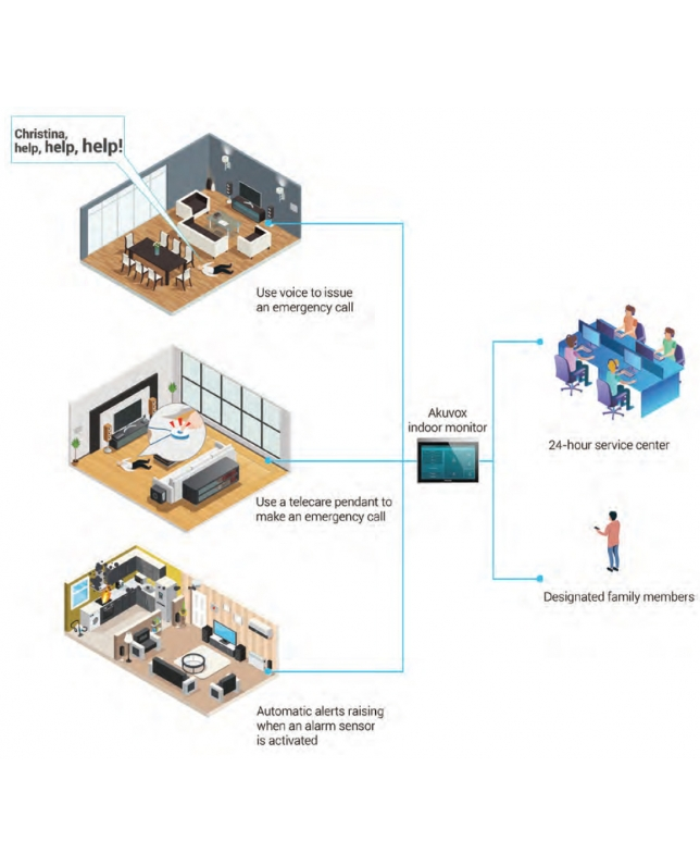 Compatible with the Akuvox EP10 Telecare Pendant, this allows elderly or infirm users and residents to simply press the pendant button to make an emergency call to a designated family member or twenty-four hour service centre should there be a fall or accident.