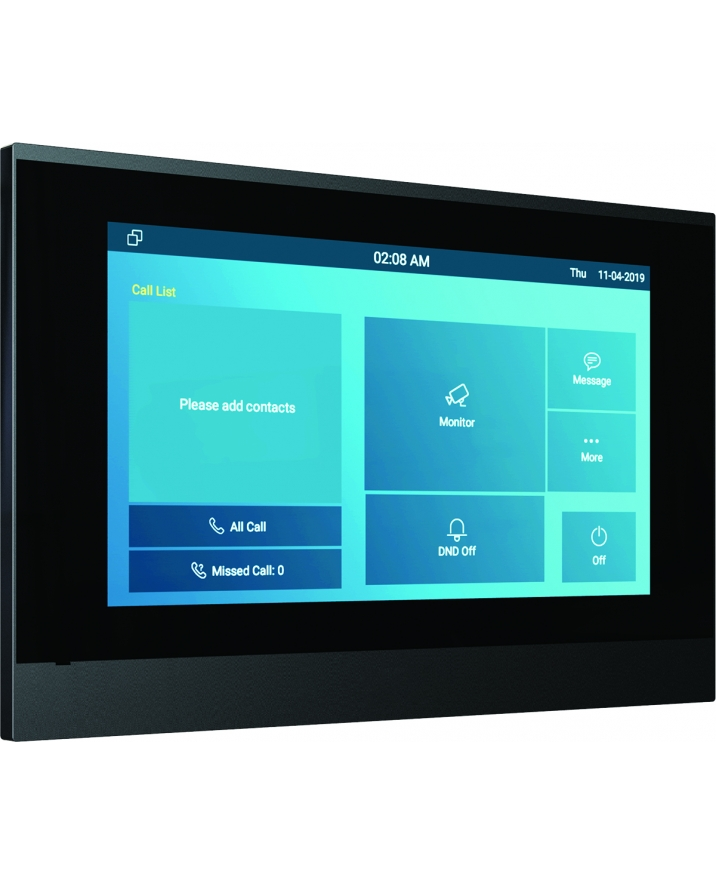 This IP-connected door answering panel provides a stylish, budget-friendly touchscreen experience in an unobtrusive, space-saving design featuring 7" HD capacitive touchscreen display.