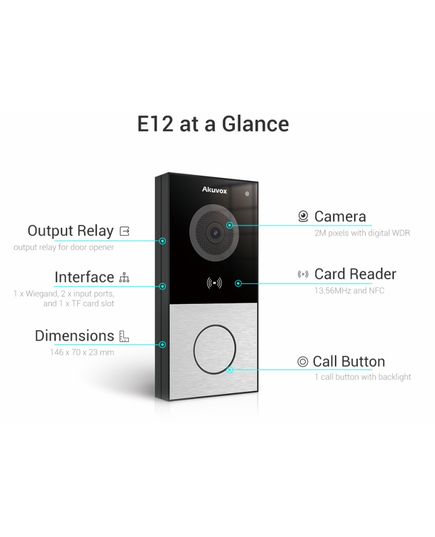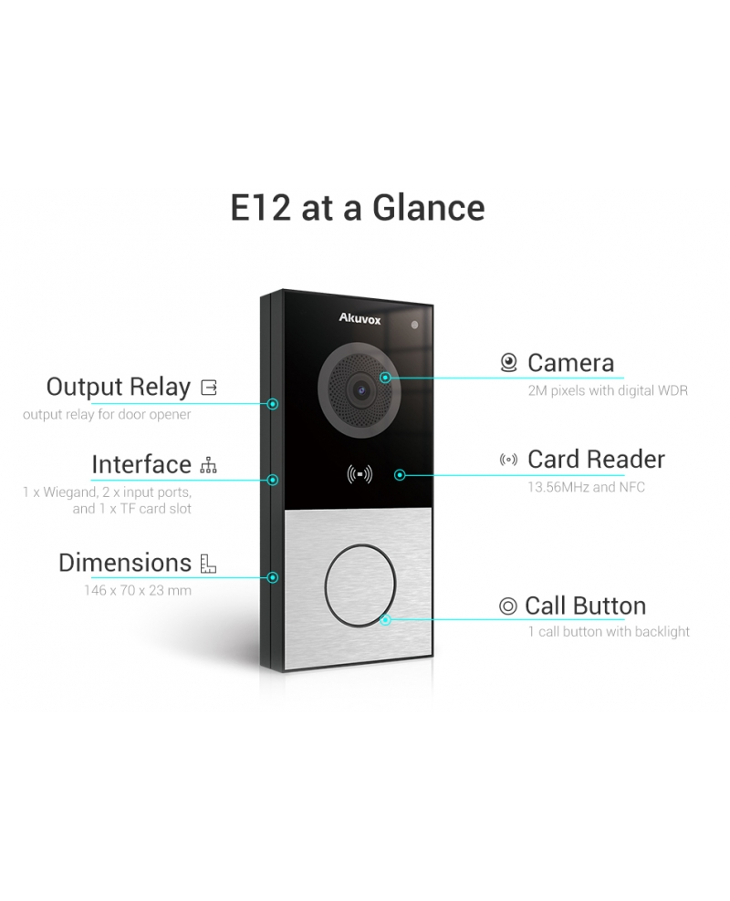 Akuvox - E12W Smart Doorbell with 1 Call Button - Camera RFID BLE Wifi Surface Mount