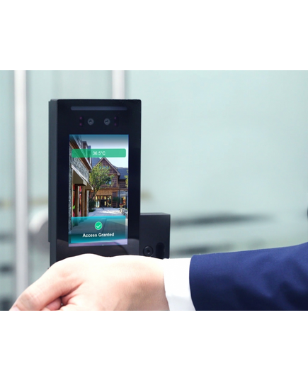 The device's advanced biometric face recognition verification can be further enhanced for touch-free door access with the addition of body temperature detection scanning. Using the optional MD02 thermal scan adapter, the E16 Door Access Unit will scan users' body temperature prior to allowing access, to ensure they are not displaying fever-like symptoms.