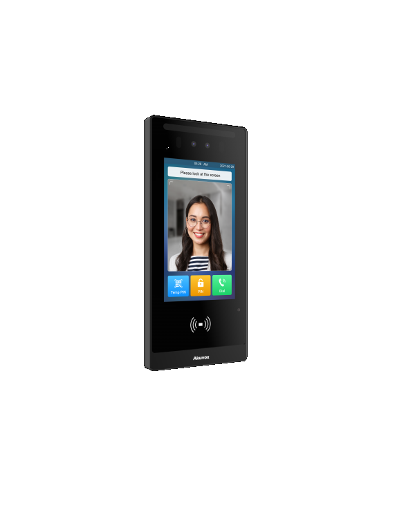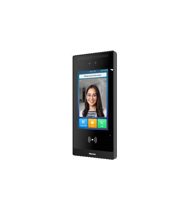 The device's advanced biometric face recognition verification can be further enhanced for touch-free door access with the addition of body temperature detection scanning.