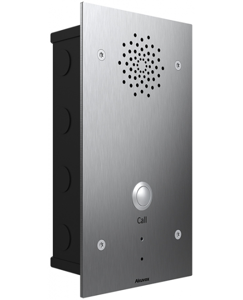 The Akuvox E21A robust Intercom features single call-button, audio-only communication (no camera) and high quality IP-rated microphone and loudspeaker.