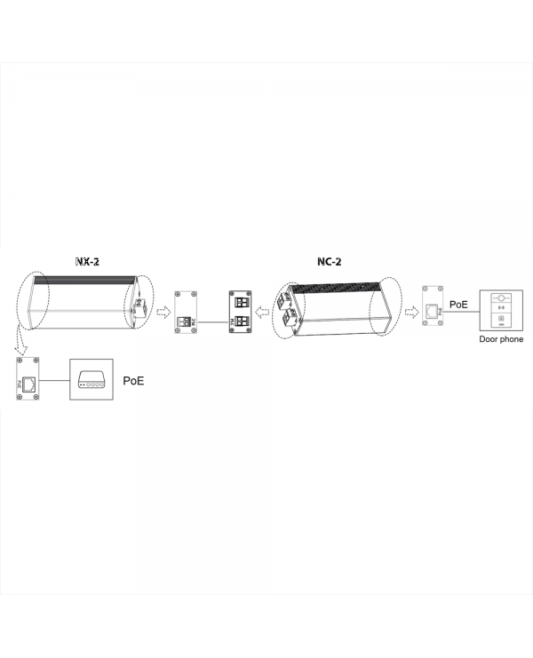 NX-2 Adapter – Connects to your existing 2-wire system, converting analog signals into digital data for IP transmission, including embedded PoE.