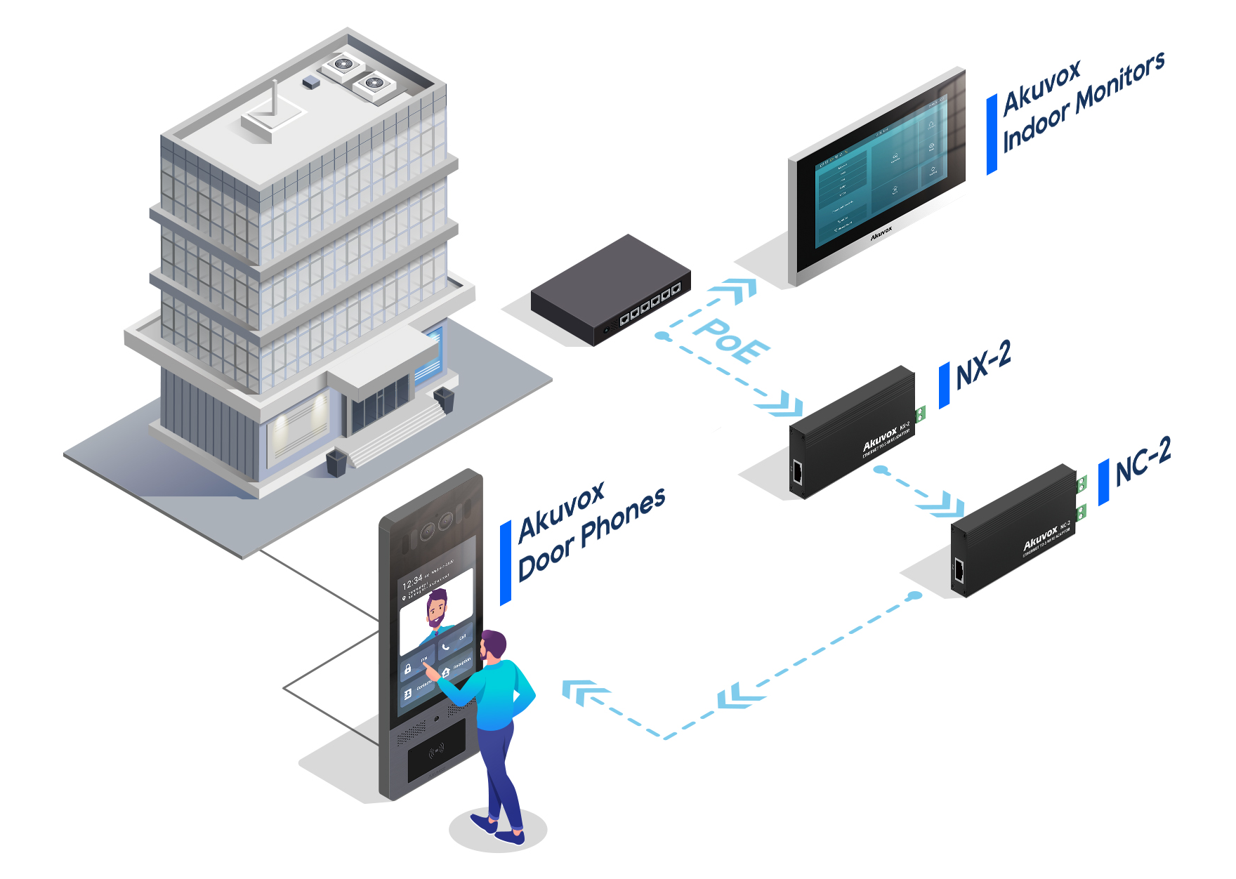 Akuvox - NX-2 KIT IP over 2 Wire Converter with PoE. Kit includes NX-2 and NC-2 converter