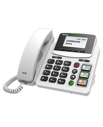 The Akuvox R15P PoE SIP phone was designed with social and health care as a focus. To support and offer greater familiarisation for the user, the R15P phone’s big button design simplifsy the dialling process, along with dedicated SOS call and 3 extra-large speed dial buttons for friends and family. These 3 keycaps are removable for a photo of the person behind each button.