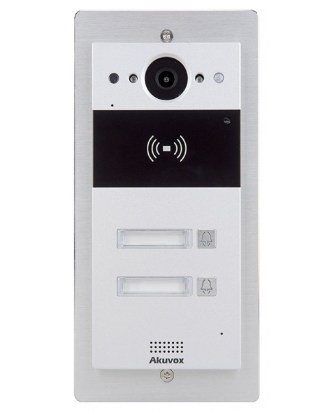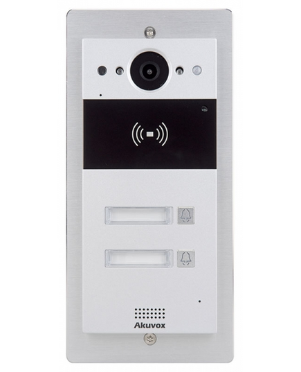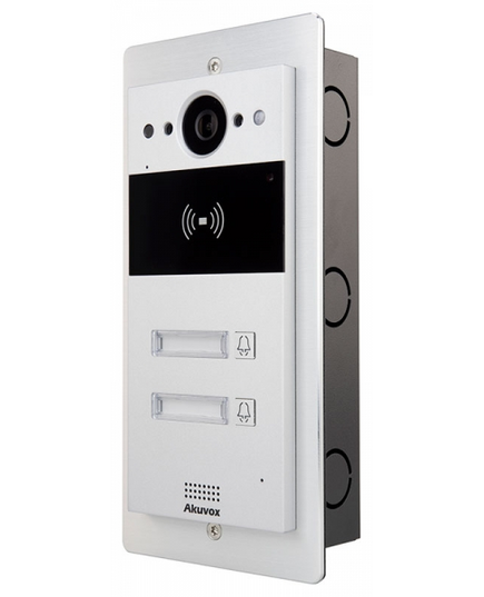Akuvox - R20B2F Compact IP Door Intercom Unit with 2 Buttons (Video & Card reader), incl. Flush Mount Backbox