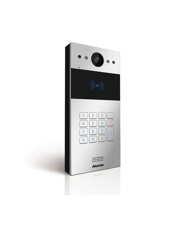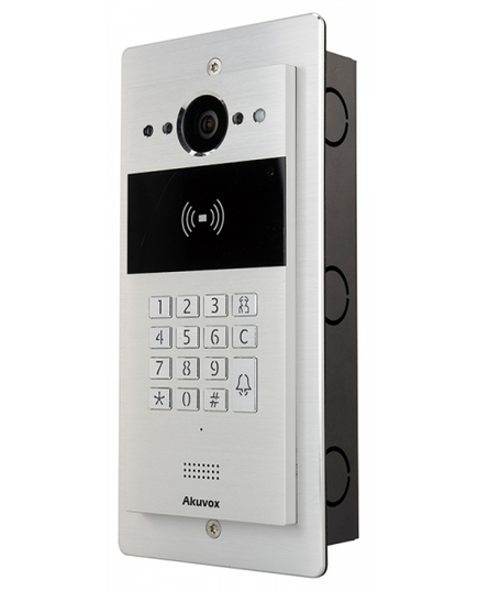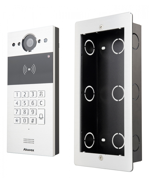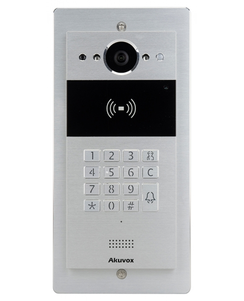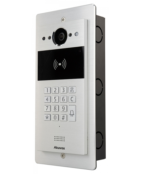 Akuvox - R20KF Compact IP Door Intercom Unit with Key Pad (Video & Card reader), Flush Mount, Silver