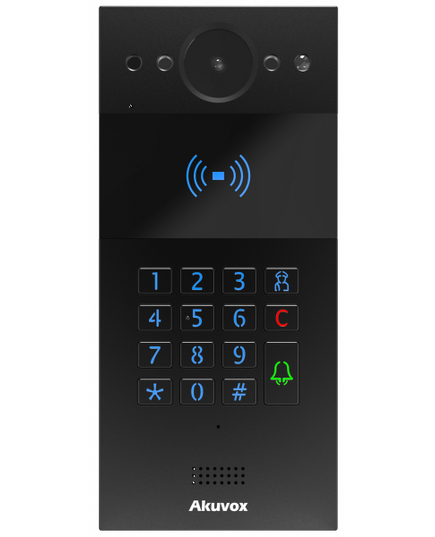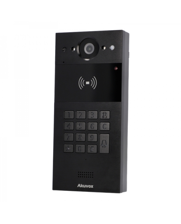 This latest addition to the Akuvox compact intercom range this brushed black aluminium variant features a numeric keypad, high resolution colour camera, RFID card reader and NFC contactless via smart phone and secure remote audio/video communication and door entry.