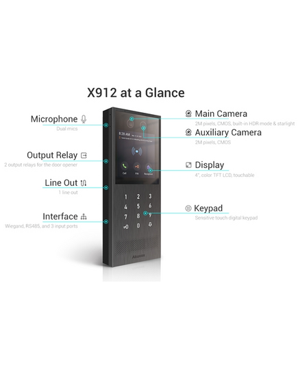 The Akuvox X912S Door Intercom features a range of touchscreen and mobile access credentials including secure face recognition, RFiD, BLE and QR Code contactless authentication and PIN Code access for an all-round secure, smart intercom/access system.