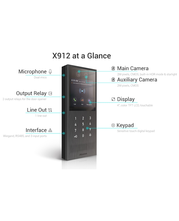 The Akuvox X912S is a vandal-resistant, advanced IP Door Intercom with multiple credential authentication options - ideal for apartment buildings, MDUs, shared office spaces and gated communities.