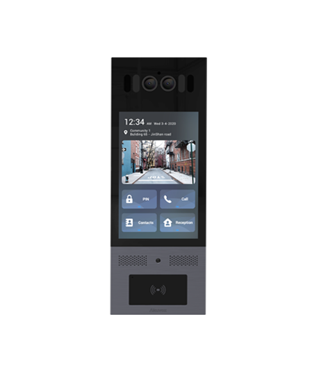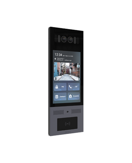 Featuring a high-impact 8-inch touchscreen interface with intuitive Android 9.0-based user interface, this smart door phone device offers a wide range of credential authentication options for door intercom and access control systems.