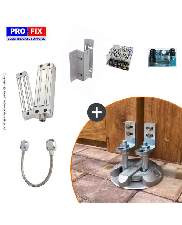 Full magnetic lock kit with floor locking for twin electric gates. Can be used with wooden and metal gates. The best locking solution available.
