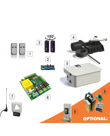 The kit uses a hot-dipped, galvanised foundation box with an internal opening and closing limit switches.