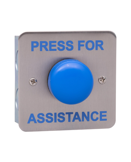 • Contacts : Double pole N/O – N/C. • Output : 4 AMP contact @ 30 V AC/DC. • All plastic large blue button. • Security screws (Allen key type). • Internal use only.
