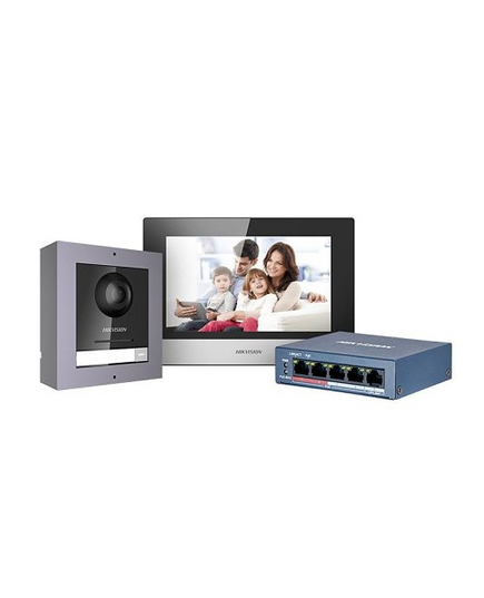 Hikvision DS-KIS602(B) IP Video Intercom Kit with 7" Touchscreen Monitor & 4 Port Switch