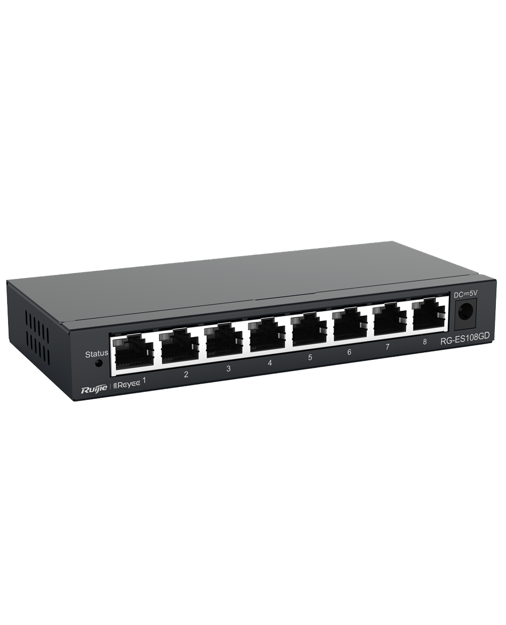 Ruijie Real-easy Series RG-ES105D/ RG-ES108D/ RG-ES105GD/ RG-ES108GD are cost-effective unmanaged access switches with metal casing designed for SMEs. The RG-ES100 Series supports plug-and-play without requiring any configuration, which can meet the requirements of various scenarios such as wired, wireless and surveillance networks.