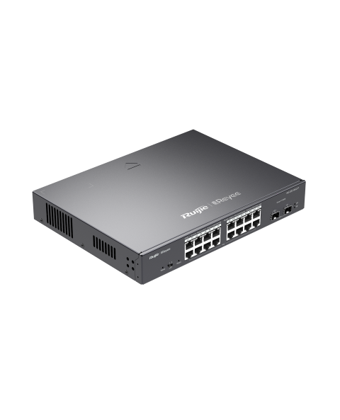 The Ruijie Reyee RG-ES218GC-P is an 18 port cloud managed PoE switch with 16 downlink and 2 SFP uplink ports.