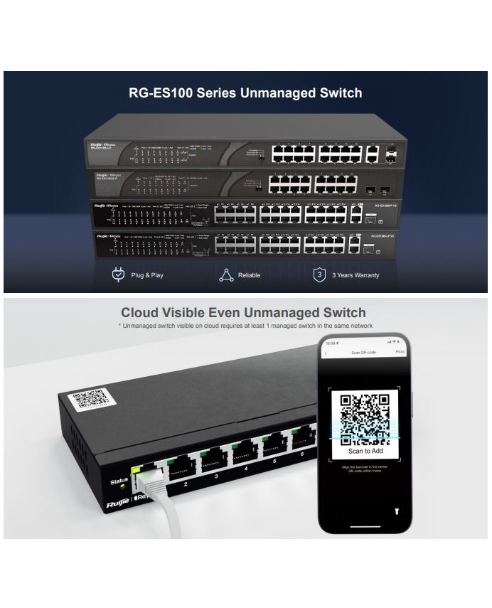 Video surveillance has been widely popularized, and more and higher requirements are raised for surveillance security switches that are indispensable for video data transmission. Ruijie-Reyee launches the RG-ES100 Series of Unmanaged Switches to provide customers with next-generation unmanaged surveillance security switches that feature diversified specifications, stable quality, and high-cost performance. The RG-ES100 Series supports diversified product forms like desktop or rack-mounting installation and 6 to 26 port PoE/non-PoE switches helping customers cope with the stringent requirements of different projects.