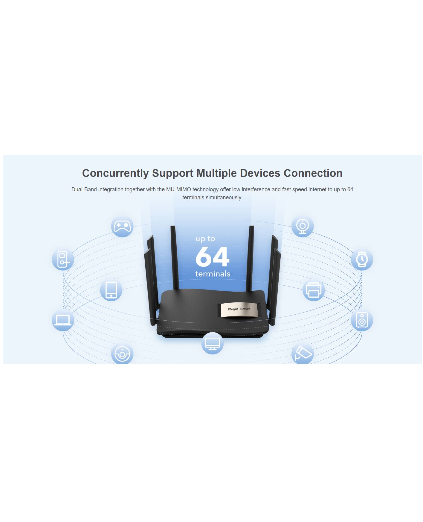 Ruijie Reyee RG-EW1200G PRO is a Gigabit dual-band wireless router designed for all types of scenarios. It comes with the next-generation Wi-Fi standard 802.11ac Wave2 boosting up to 1267Mbps, which enables seamless 4K streaming. With built-in high-power amplifiers and multiple external antennas, additionally, with MU-MIMO technology and beamforming technology, EW1200G PRO brings optimized Wi-Fi coverage throughout all types of space.