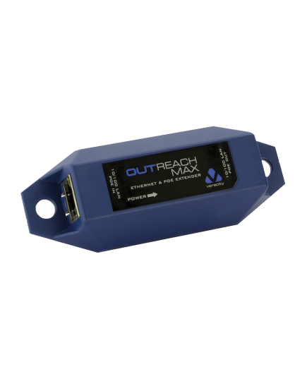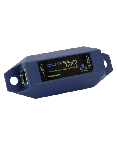 The Veracity Outreach Max VOR-ORM is a simple device which can extend Ethernet cable installations beyond the 100m limitation. It is used to join two Ethernet cables, each of up to 100m in length, and acts as a repeater to forward both LAN activity and power to a PoE-enabled device at a 200m distance.
