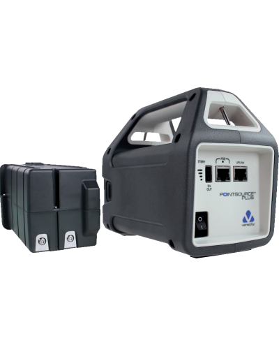 POINTSOURCE Plus has a battery life of 3 to 5 years, or 200 - 1000 cycles depending upon discharge depth and operating temperature. The battery status indicator shows the remaining charge in steps of 25%. The simple design of the system allows the removable battery to be recharged whilst POINTSOURCE Plus continues to be used with a second battery.