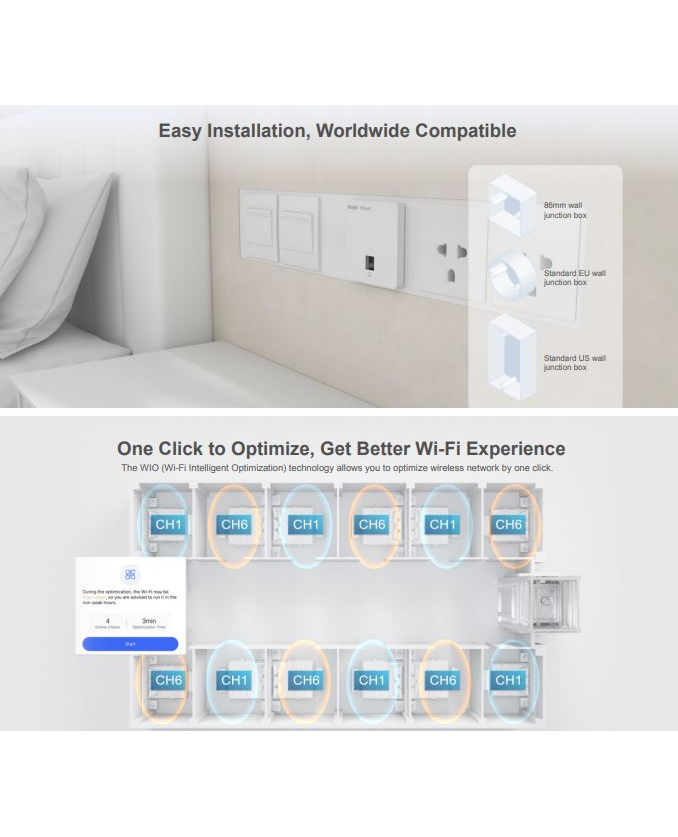 - Dual-radio performance, gigabit wireless wall-mounted AP