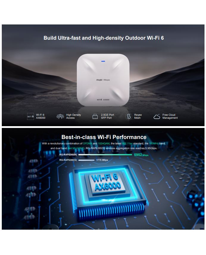 RG-RAP6260(G) supports Reyee Mesh, which allows users easily expand extra Wi-Fi in outdoor place. Less wiring, more relaxing.