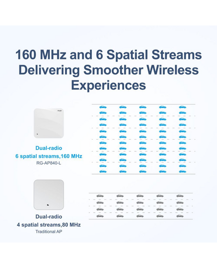 Radio Design-Dual-radio: 2.4 GHz (2x2), 5 GHz (4x4) up to 6 spatial streams